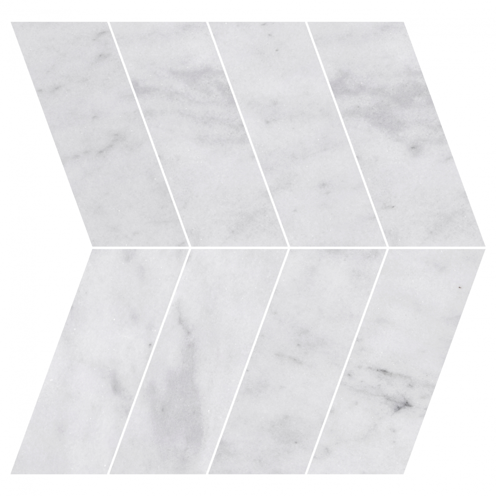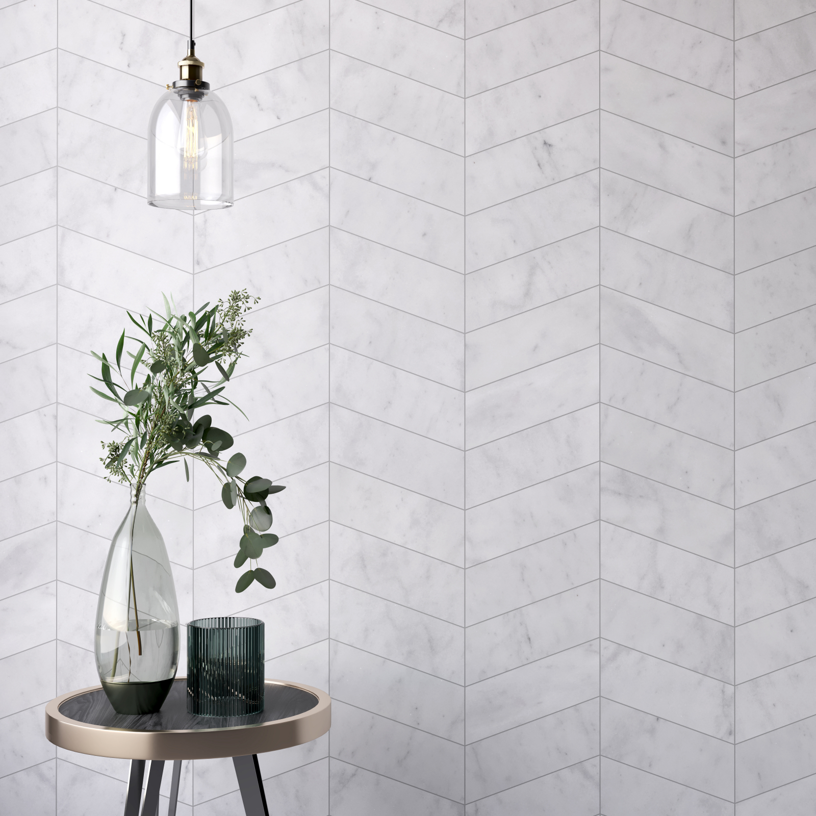 Prefer these over herringbones We had full-size Carrara tiles on the floor for some time now so we knew the quality of Carrara marble. These Chevons proved to be an excellent match.