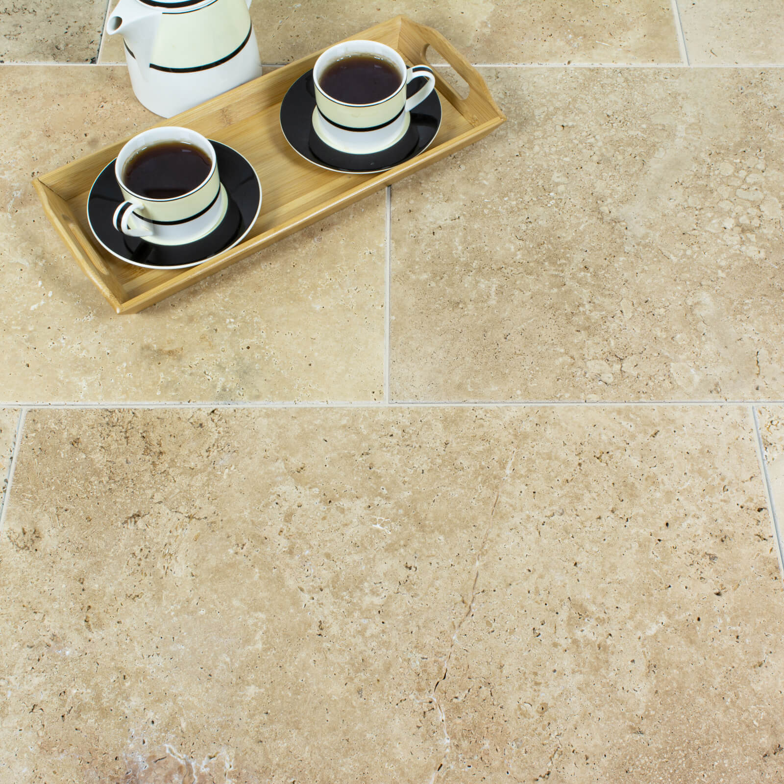 A cost effective travertine tile that has a mixture of brown, beige, cream colours. The pitted surface of these travertine tiles provides grip thanks to their texture and nature. You can put them just about anywhere and you won't be disappointed. Their tumbled finish gives them a beautiful rustic finish that is admired by many. The tumbling process helps smooth off sharp corners leaving a softer looking stone.