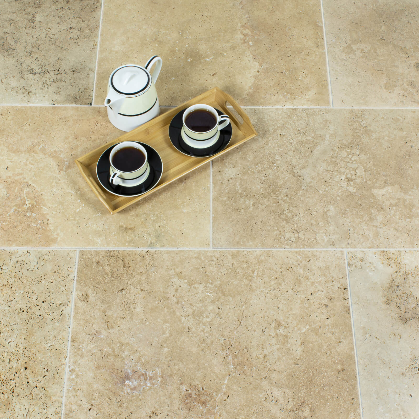 Tumbled tiles add great depth to any flooring. They deliver a rough and a pitted surface, rounded edges and corners. It is the process by which stone is tumbled or vibrated with smaller abrasives to produce an aged appearance. The result is an area that feels rustic and relaxed yet sumptuous at the same time.