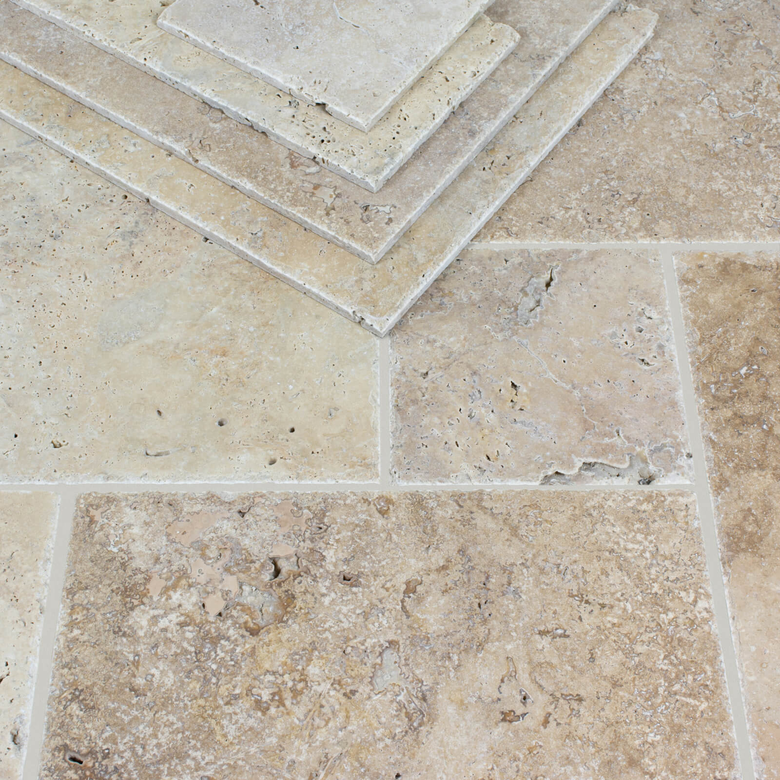 Classic Travertine Tile Unfilled & Brushed Chiselled Edge