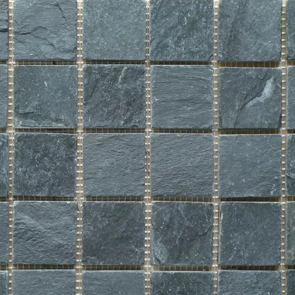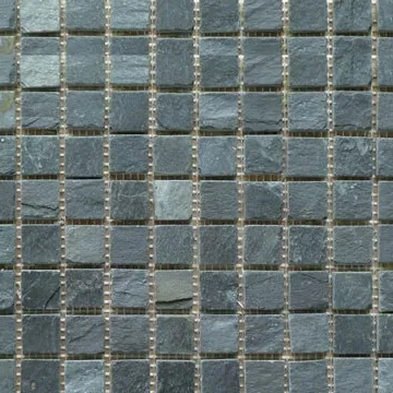 These black Chinese mosaics are complementary to our black slate riven tiles. As they are mesh mounted, it is easy to use them as borders as well.