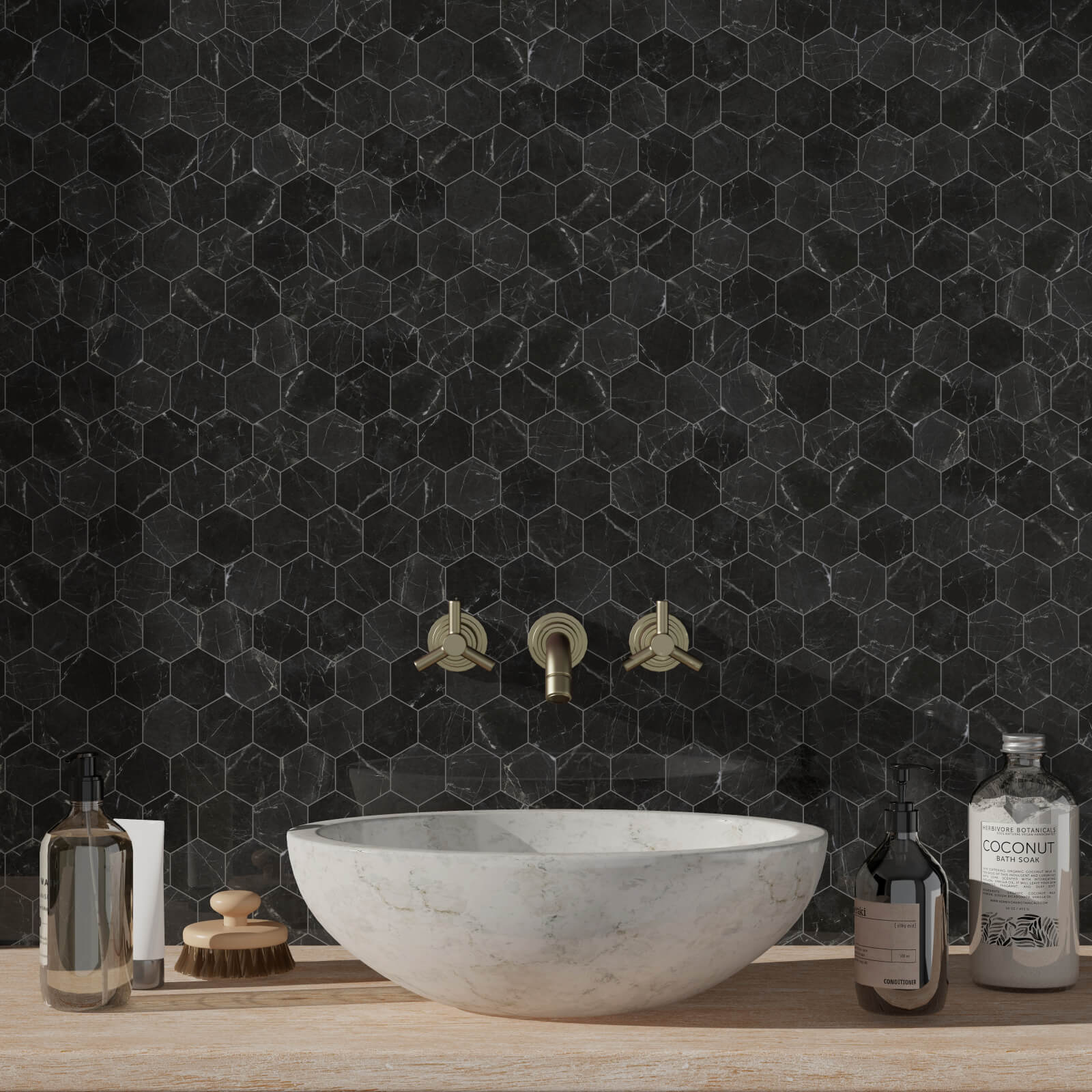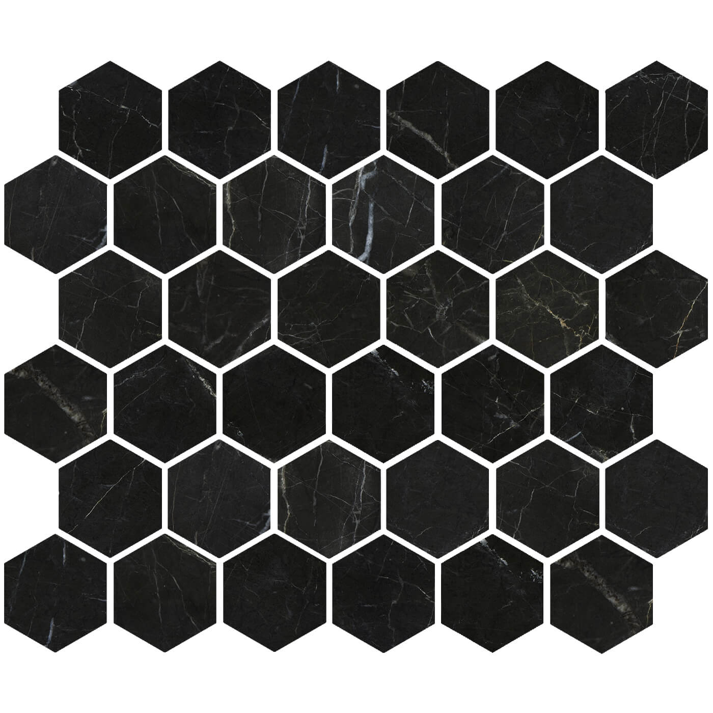 Marquina black marble at its best. The quality, value and amazing look. The popular hexagon mosaic tiles will create the "Wow" factor in your project.