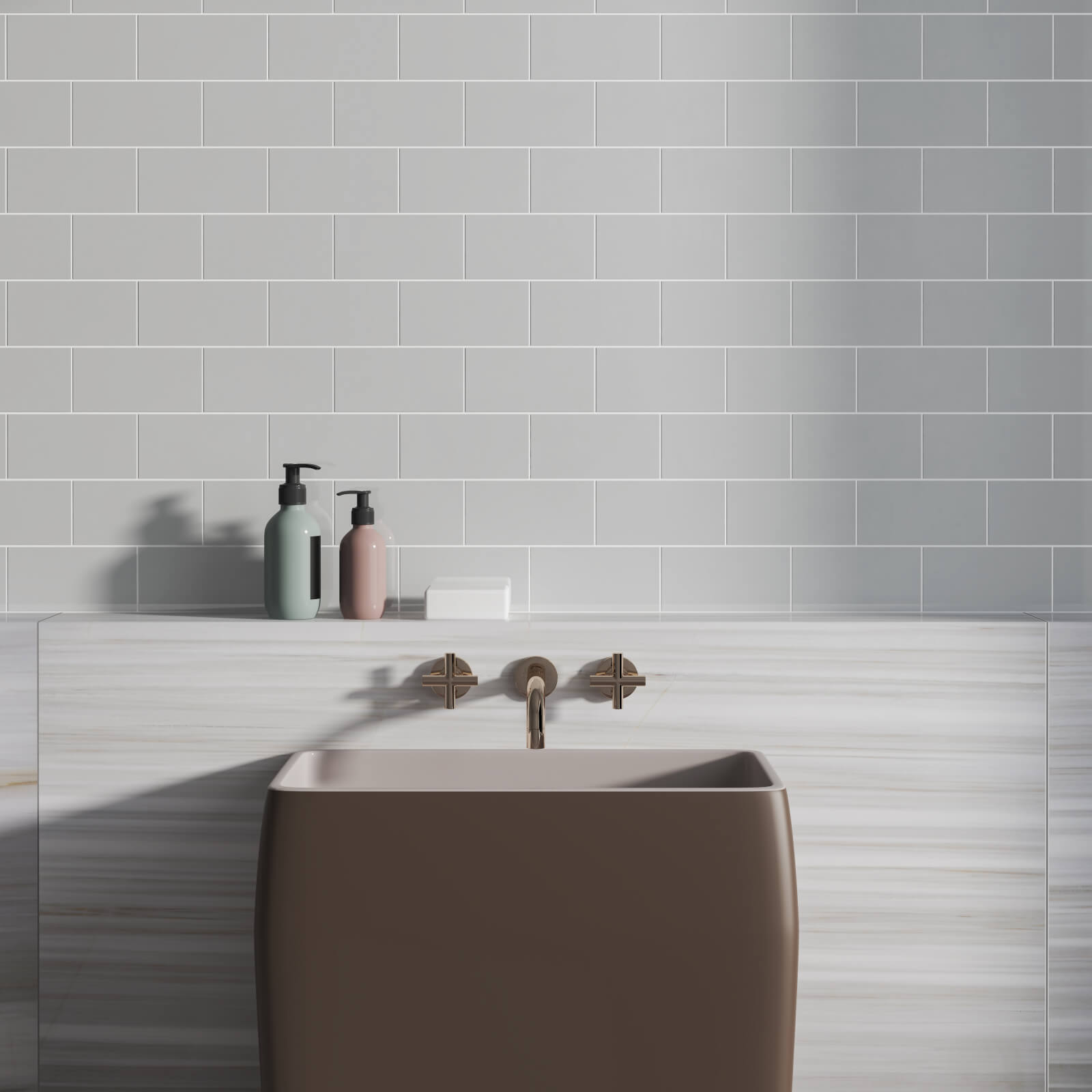 Metro Light Grey Gloss Ceramic Wall Tile Flat