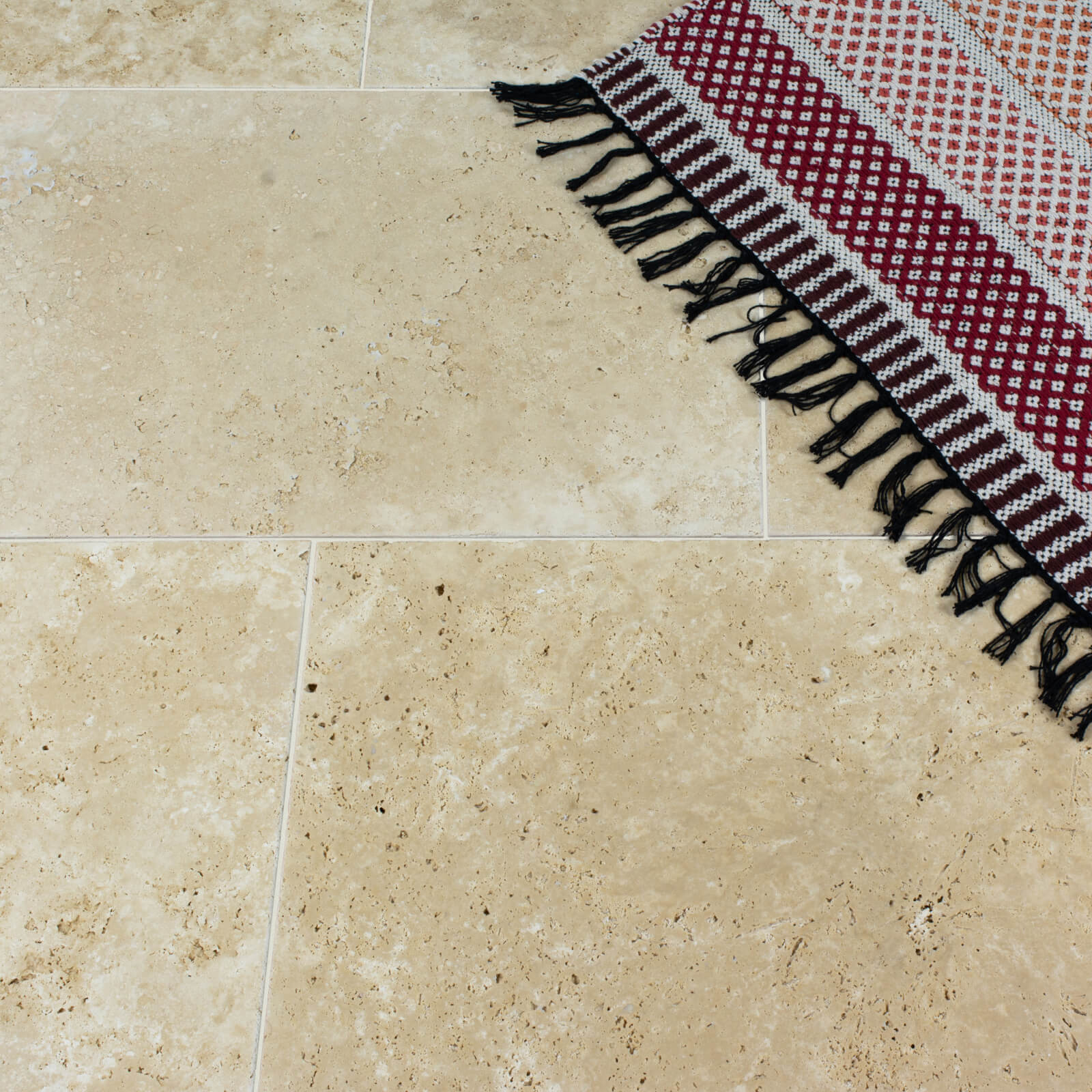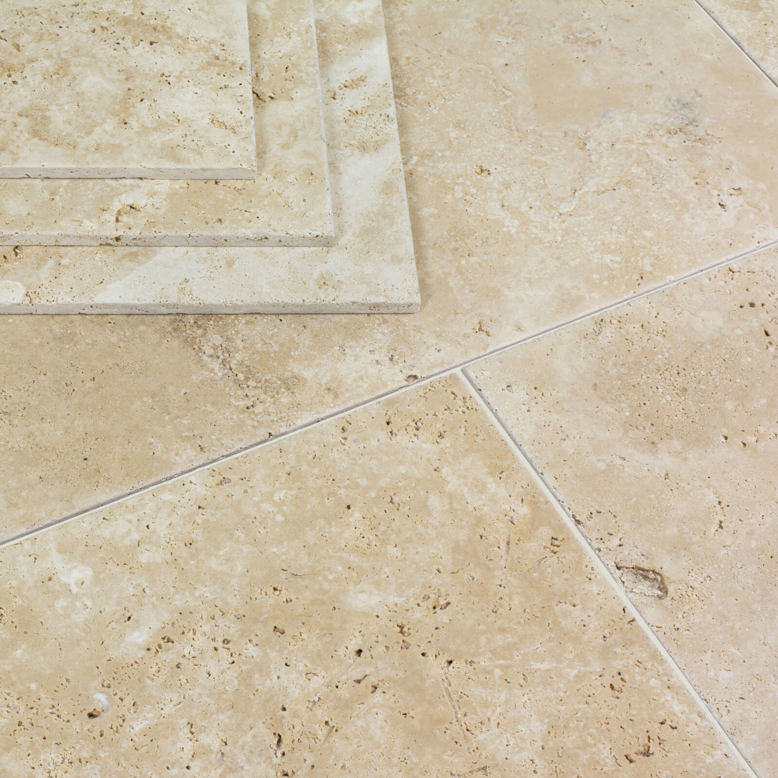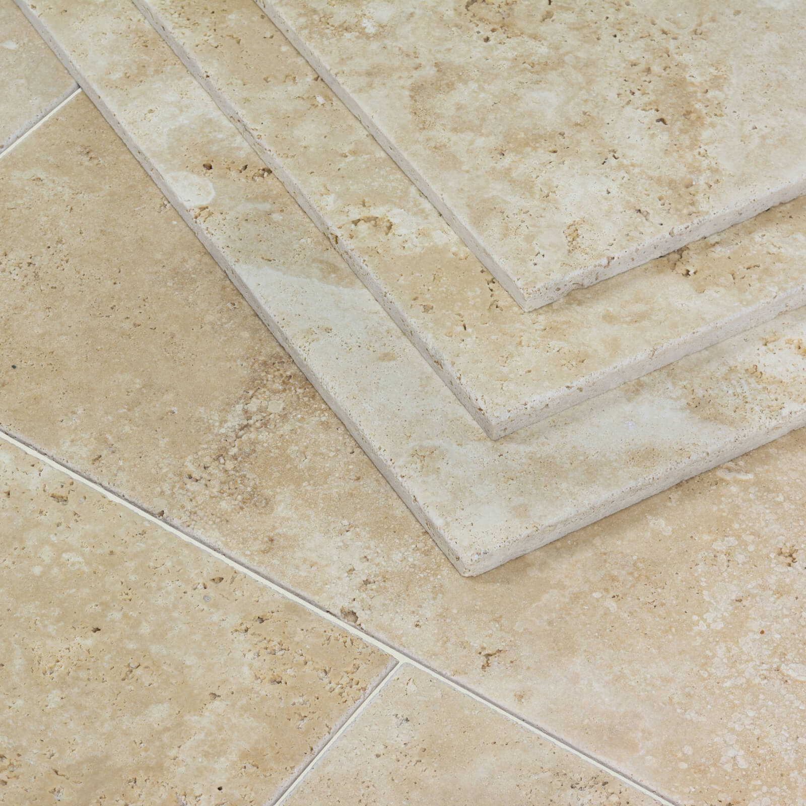 Perfect travertine tiles that have a soft, creamy and light beige background colour. You can put them just about anywhere and you won't be disappointed. Their tumbled finish gives them a beautiful rustic finish that is admired by many. The tumbling process helps smooth off sharp corners leaving a softer looking stone.