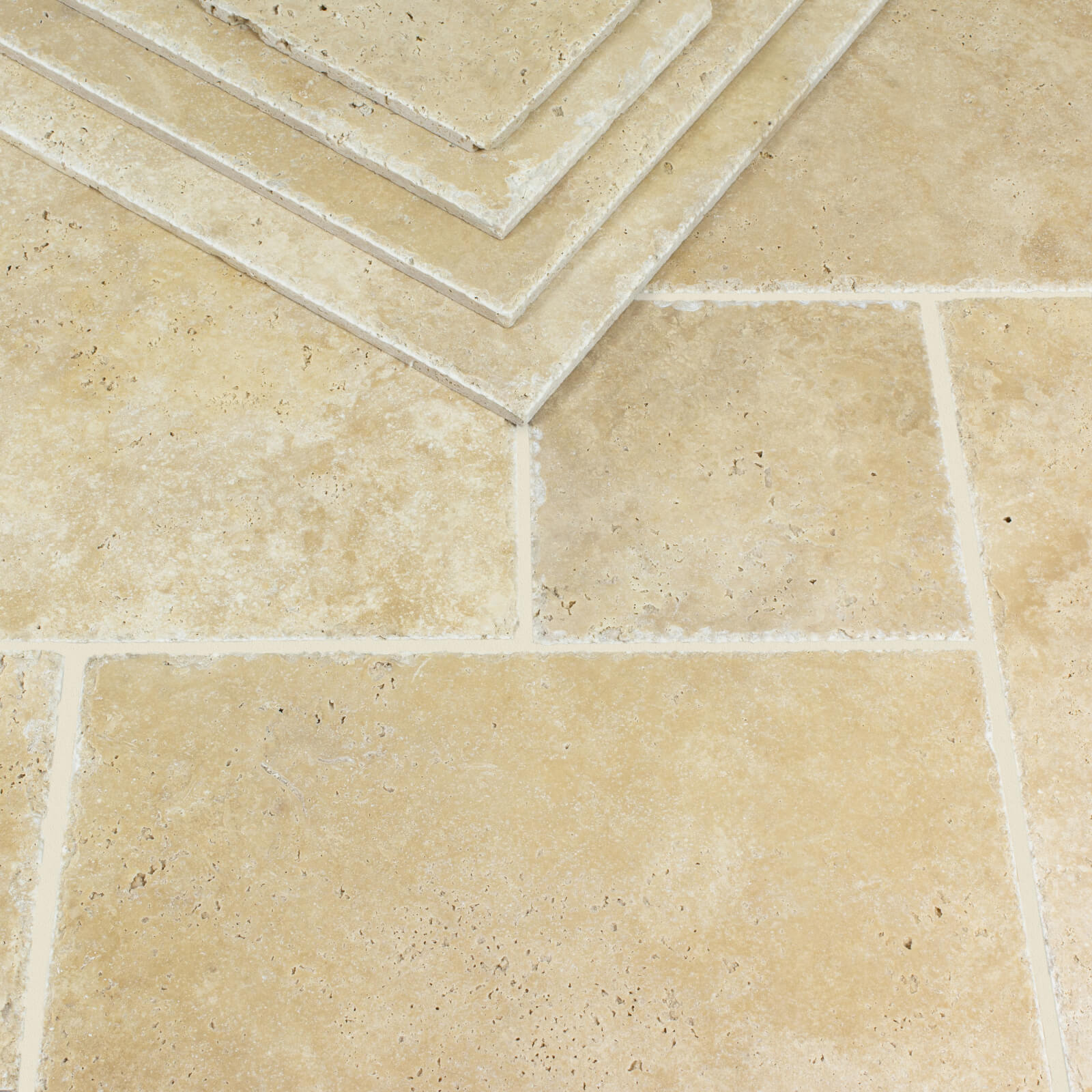Premium Ivory Travertine Tile Unfilled & Brushed Chiselled Edge