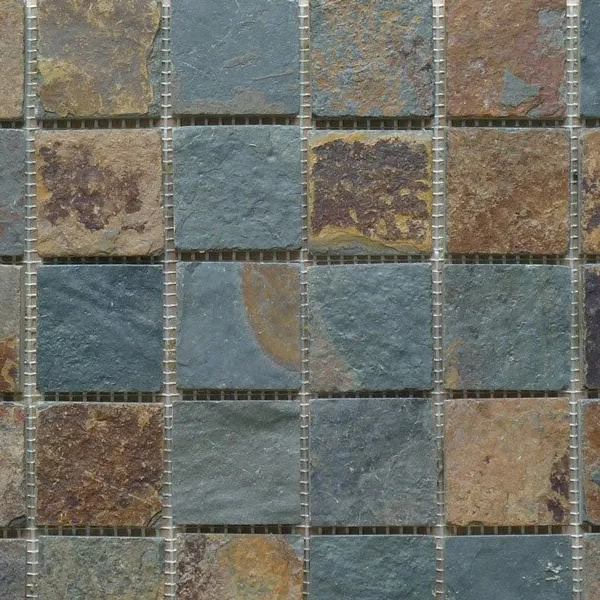 Multicoloured slate tiles are very popular as their prices are very competitive and also their colours are very attractive. These mosaics are perfect match to our rust multicolour slate tiles.